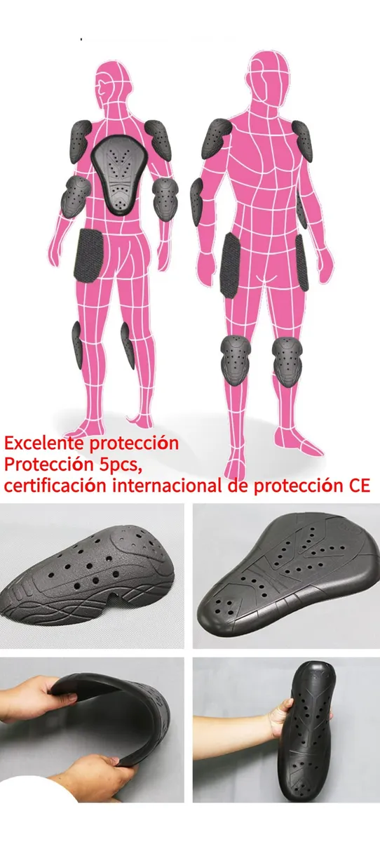 La chaqueta de motocicleta para mujer combina protección avanzada y comodidad de verano. Diseñada con 5 almohadillas protectoras en hombros, codos y espalda, ofrece seguridad ante impactos, mientras que su forro de malla transpirable mantiene una ventilación óptima durante los días calurosos. Su forro impermeable desmontable permite adaptarse a diferentes condiciones climáticas, garantizando versatilidad y comodidad.