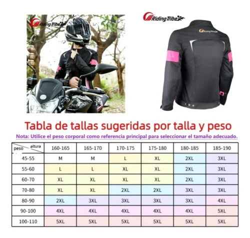 ⚡ Especificaciones técnicas de la chaqueta de motocicleta para mujer