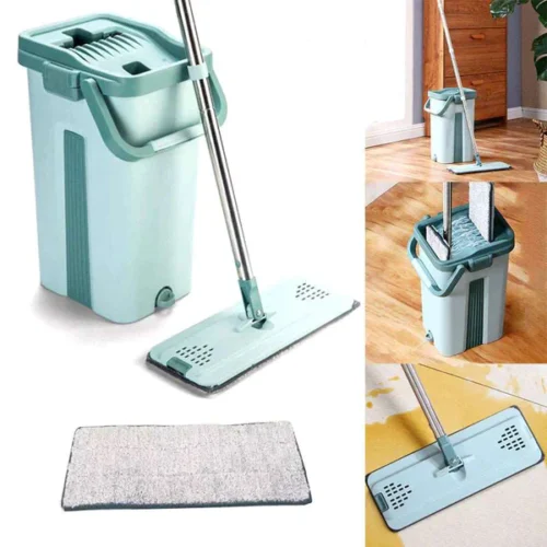 Este juego fregona cubo profesional es la solución ideal para quienes buscan una limpieza profesional y práctica en el hogar o negocio. Equipado con una mopa plana de microfibra lavable, un cubo compacto con escurridor manos libres y una varilla de acero inoxidable ajustable, garantiza resultados impecables en todo tipo de superficies como madera, cerámica, mármol, y más.