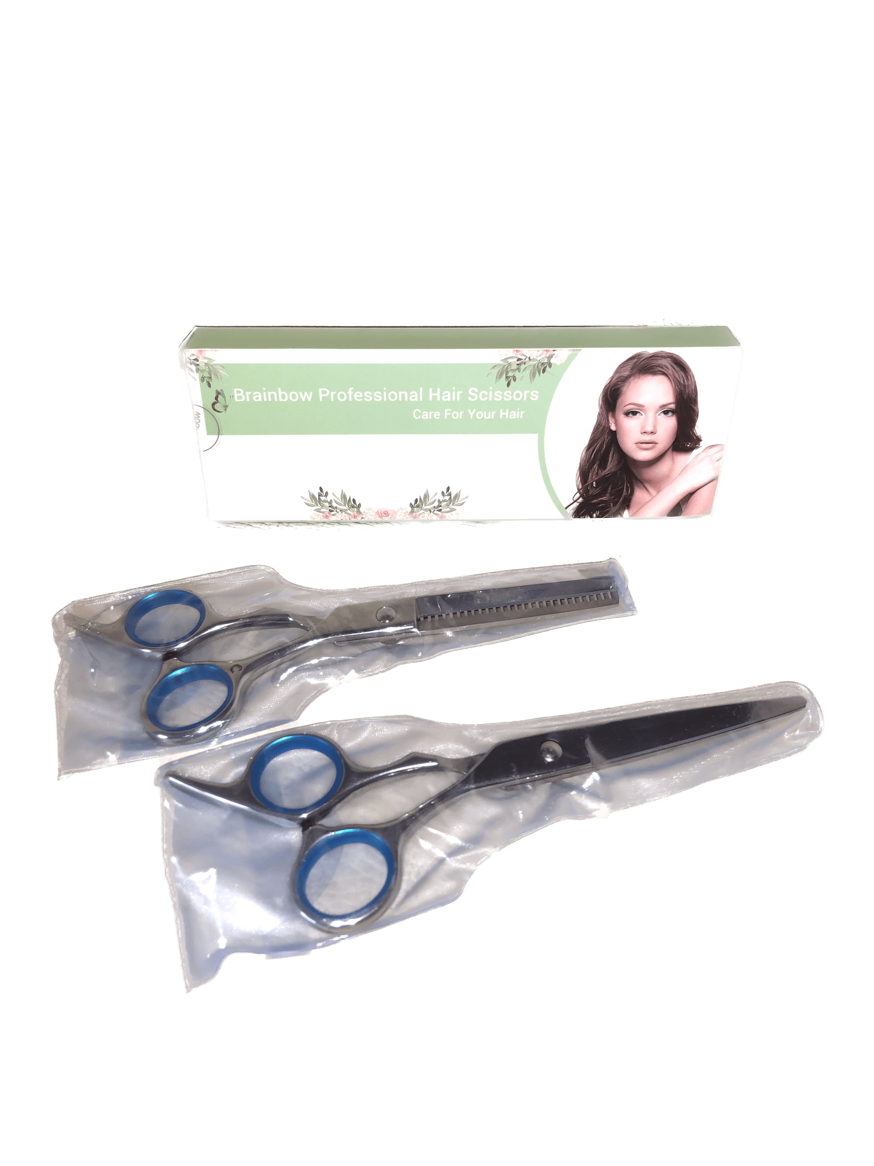 Paquete incluye: : *1 tijera plana regular, *1 tijera de entresacar (17 cm y 15,4 cm), *1 limpiador y *1 caja.