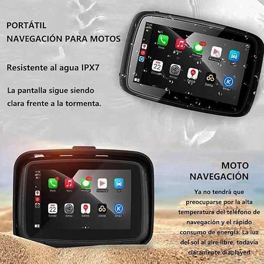 La Pantalla Táctil Inalámbrica para Motocicleta es ideal para quienes desean combinar navegación, seguridad y entretenimiento en un solo dispositivo. Gracias a su certificación IP67, puede soportar lluvia, polvo y condiciones climáticas extremas, garantizando un uso confiable en cualquier ruta. La conectividad Bluetooth permite sincronizar el smartphone sin cables, facilitando llamadas manos libres, reproducción de música y navegación mediante Apple CarPlay o Android Auto.