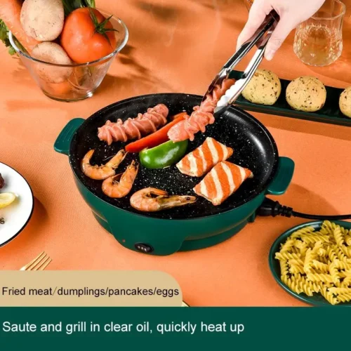 La sartén eléctrica antiadherente es ideal para todo tipo de preparaciones: desayunos rápidos, cenas ligeras, snacks e incluso postres. Su tamaño y diseño compacto permiten llevarla a la mesa directamente, sirviendo los alimentos sin necesidad de platos adicionales.